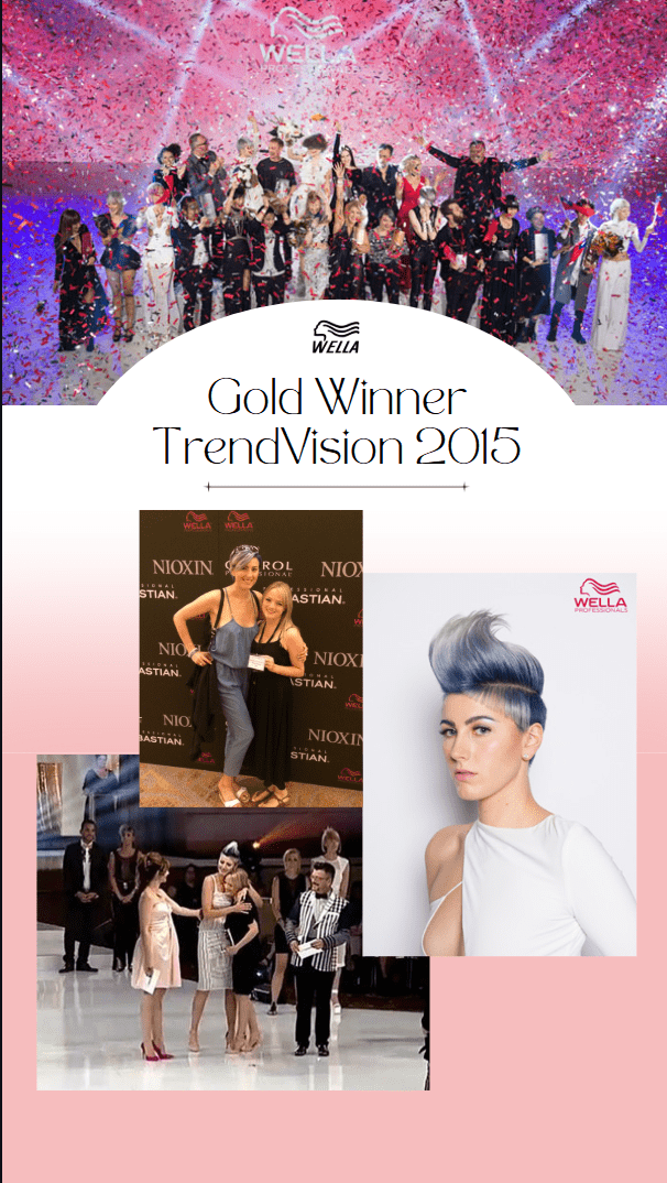 My work has been recognized internationally, earning Gold at the North American Wella TrendVision Awards, where I competed in Montreal and on stage in Las Vegas. I was honoured to represent Canada at the Wella Global TrendVision Awards in Berlin, Germany.